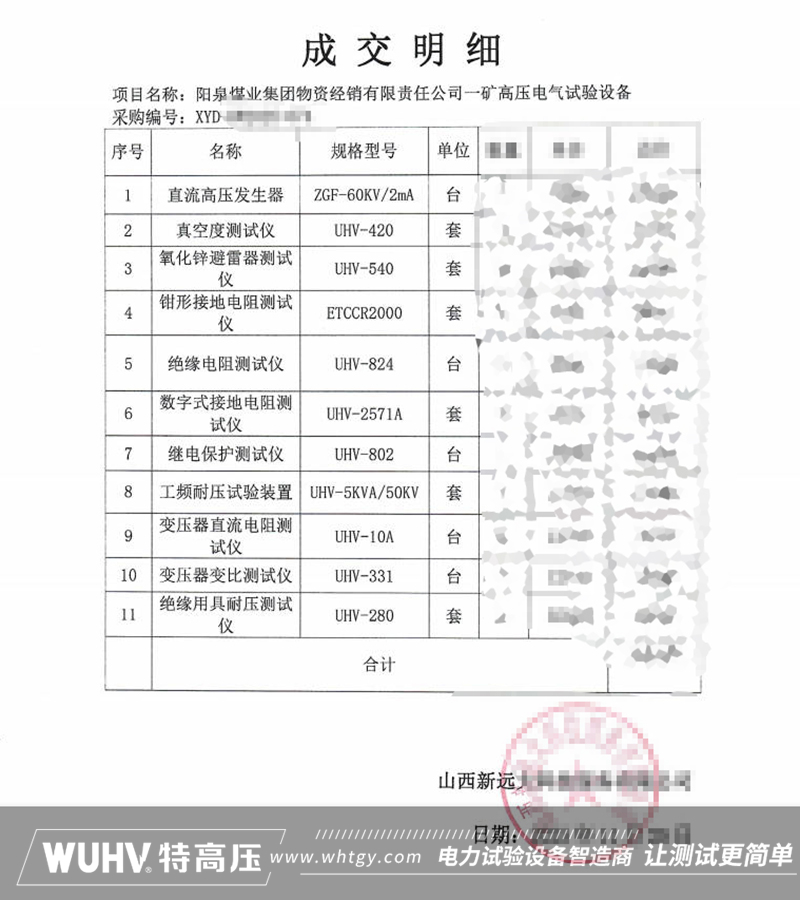 武漢特高壓成功中標陽泉煤業高壓電氣試驗設備項目