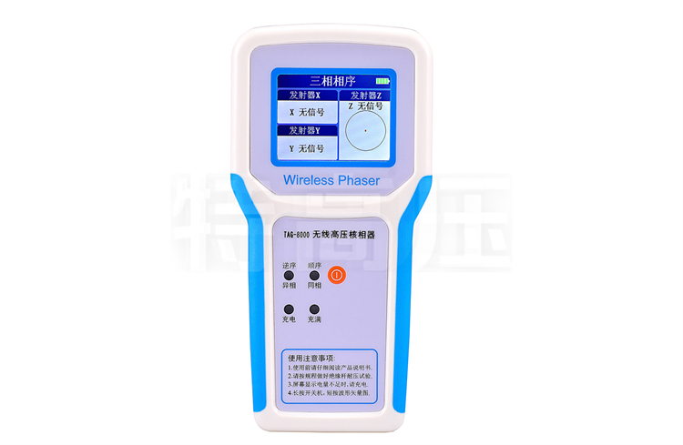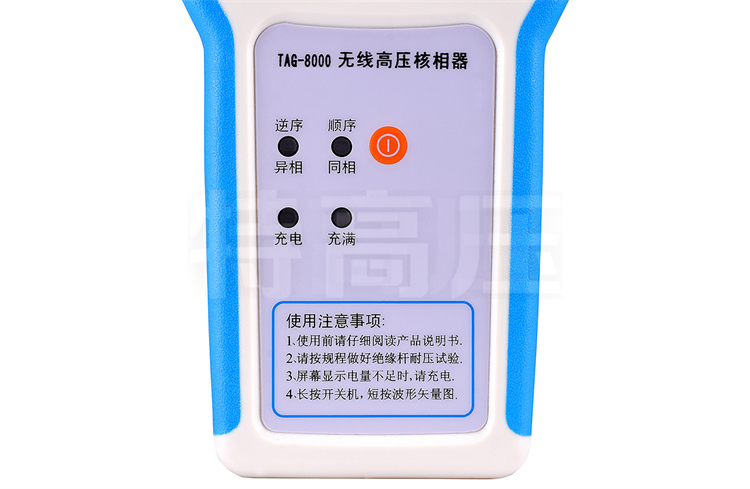 TAG-8000 無線高壓核相儀(以下簡稱“儀器”)用于兩條高壓線路并網(wǎng)或環(huán)網(wǎng)核相。儀器適合0.22~220kV交流輸電線路帶電作業(yè)和二次側(cè)帶電作業(yè),具有高壓驗電功能。
