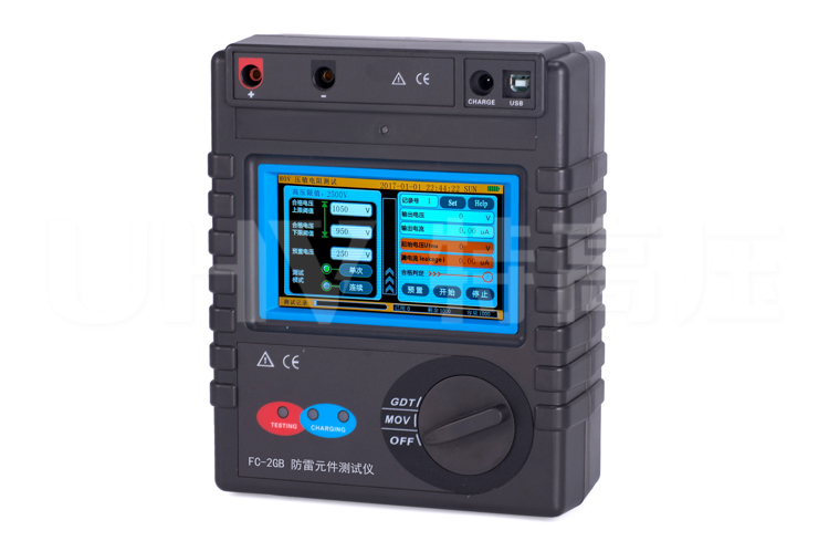 智能型防雷元件測試儀采用觸摸彩屏中文界面,功能直達、一鍵測量、操作簡易快捷,用戶無需費力記憶操作方法,點擊屏幕的“HELP”即可彈出操作方法,有效指引用戶操作儀表。同時儀表采用大容量可充電鋰電池、具有數據存儲功能,可自動存儲含有日期時間的測試結果3000組、觸摸屏方便用戶查閱歷史記錄、USB數據上傳導出等功能,還有自動關機、電池電量低提醒等功能。儀器具有防震、防塵、防潮結構,整機美觀堅固耐用,適應惡劣工作環境,是氣象防雷、電力、通信、機電安裝和維修、防雷元件生產廠家、以及工業企業部門常用必備的儀表。
