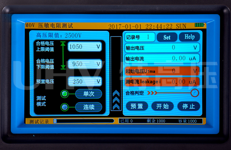 | 高壓限值設定 | 步進“250V”進行調節,最高可設定到3000V | |